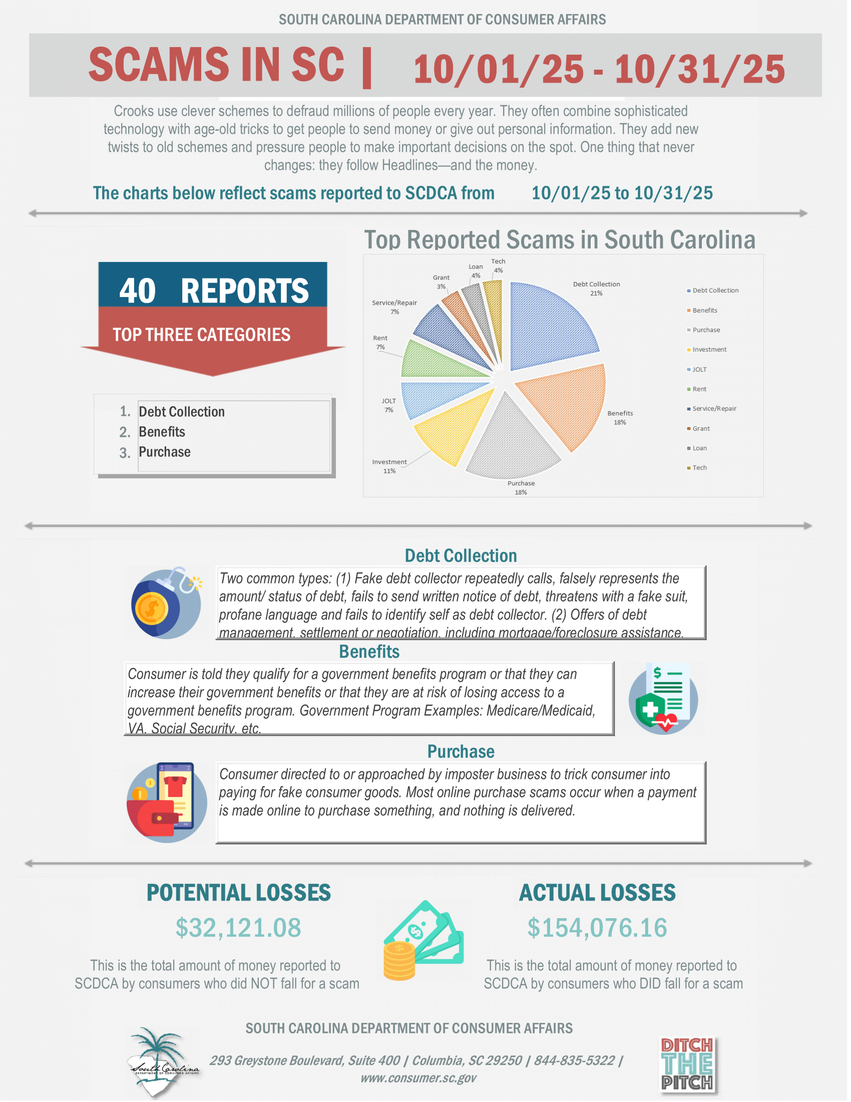 When consumers report scams, it helps stop others from falling victim to the same scams. Education is central to the Department's mission and as such we are committed to educating consumers about the latest scams. Please take a moment to tell DCA if you've gotten a scam call, email, text, etc.-- even if you didn't fall victim to the scam.